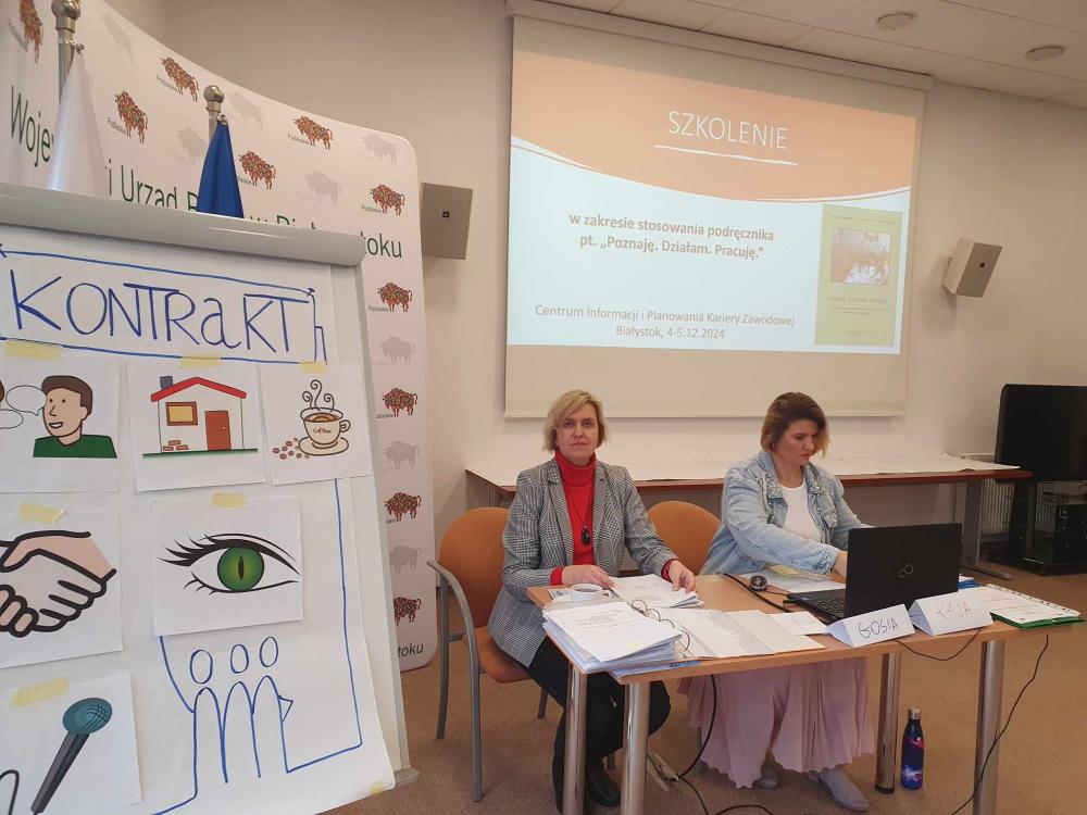 W dniach 4-5 grudnia 2024 r. w Wojewódzkim Urzędzie Pracy w Białymstoku odbyło się szkolenie doradców zawodowych z powiatowych urzędów pracy województwa podlaskiego. Uczestnicy szkolenia mieli okazję zapoznać się z wybranymi narzędziami i ćwiczeniami, zebranymi w podręczniku „Poznaję. Działam. Pracuję", przygotowanym na zlecenie Ministerstwa Rodziny, Pracy i Polityki Społecznej.